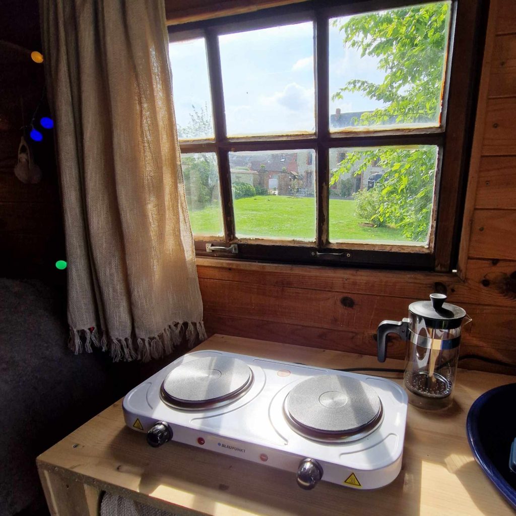 Vous l’aurez compris, c’est un séjour des plus rustiques qui vous attend chez Maria. Idéale pour les jeunes aventuriers, les personnes souhaitant un retour aux sources loin du confort moderne, la roulotte de Maria vous promet un séjour dépaysant et atypique. Bien que possédant une petite plaque de cuisson de camping électrique, y cuisiner pourrait s’avérer ardue, un barbecue reste à votre disposition pour y faire griller quelques saucisses. Nous pouvons aussi vous proposer de vous apporter vos petits-déjeuners en supplément et sur demande.
